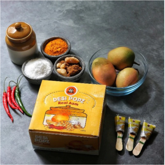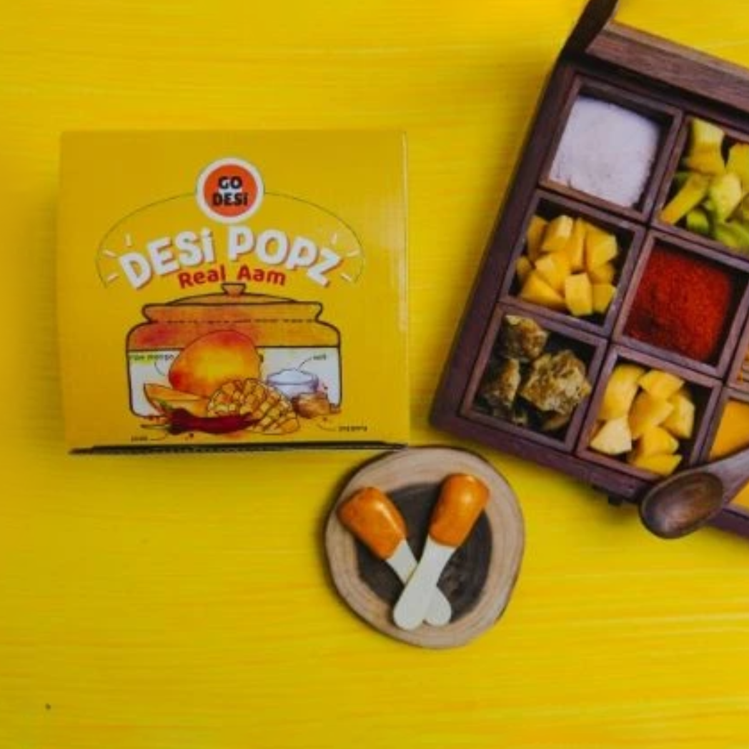 Desi Popz is a lollipop with an Indian twist. It is loved by people who have eaten tamarind and raw mango snacks and toffies and can relate to their childhood memories. The main challenge of the project was to design a cost-effective packaging that could be used across all the selling platforms and would also serve as a display for Desi Popz.