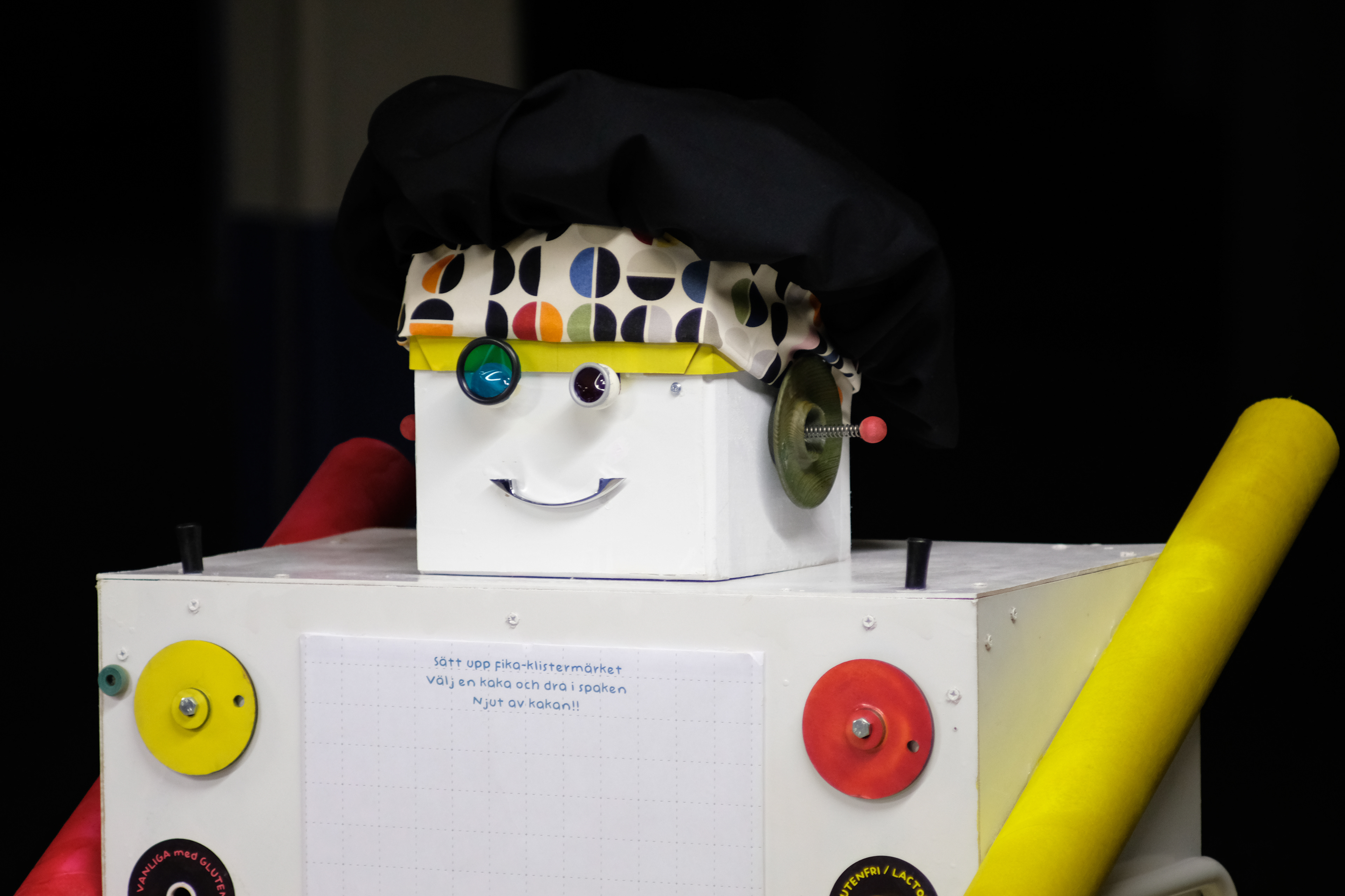 The children came up with the idea of a cookie serving robot; they developed the concept by prototyping with loose parts. I used insights from these meetings to detail and build onto their design concept. The outcome was an interactive installation of a cookie machine that the children operated at the Vår Festival 2022.